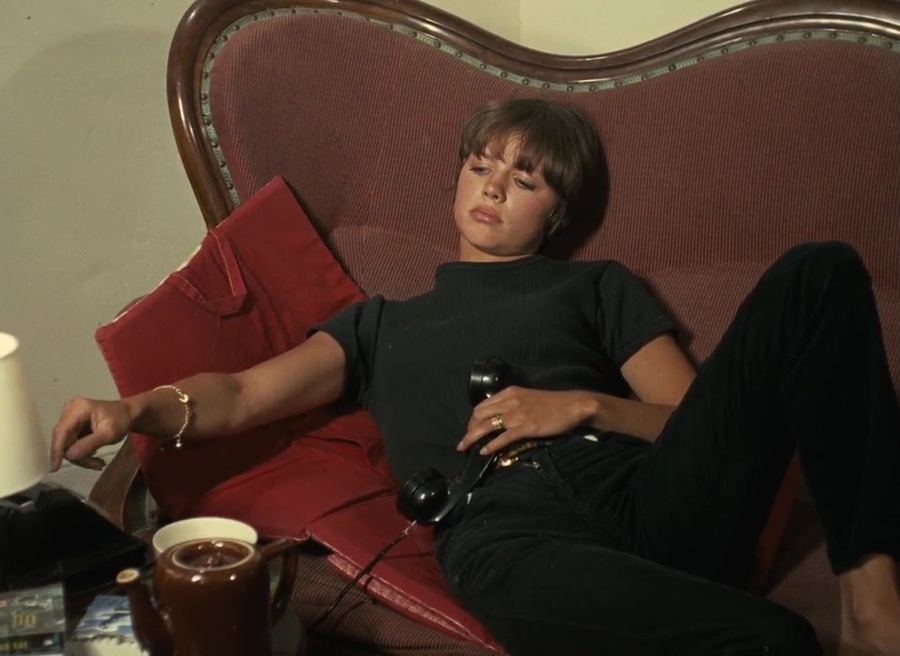 Брюки часто выбирает в качестве низа Хайде из киноленты «Коллекционерка» — ее джинсы также в черном, белом и синем цветах сочетаются с футболкой, купальником или свитером и передают расслабленный образ героини.