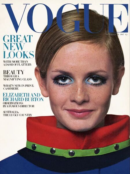 Слева: Твигги на обложке октябрьского Vogue, 1967 Справа: Бриджит Бордо в к/ф «Бабетта идет на войну» (реж. Кристиан-Жак, 1959)