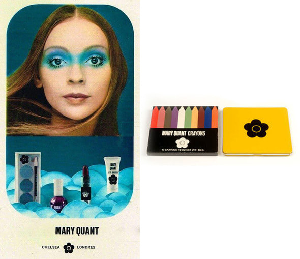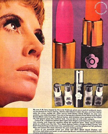 Реклама косметических продуктов от Мари Куант, 1960-е г. г.