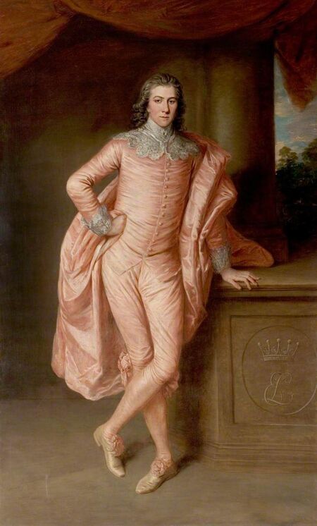 К тому же, в культуре розовый цвет не всегда был «женским». Даже наоборот, раньше его считали «мужским» цветом, а «женским» был голубой. Розовый — это, по сути, оттенок красного — цвета крови, силы и воинской доблести. Так что в ту эпоху не было ничего странного в том, что состоятельные мужчины наряжались в розовые костюмы.