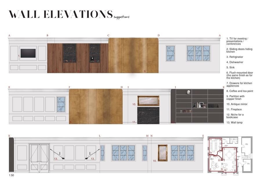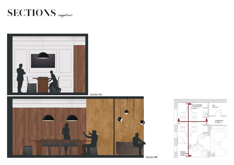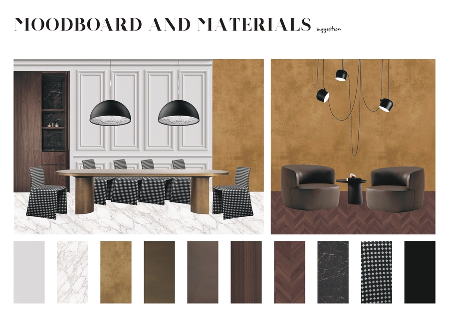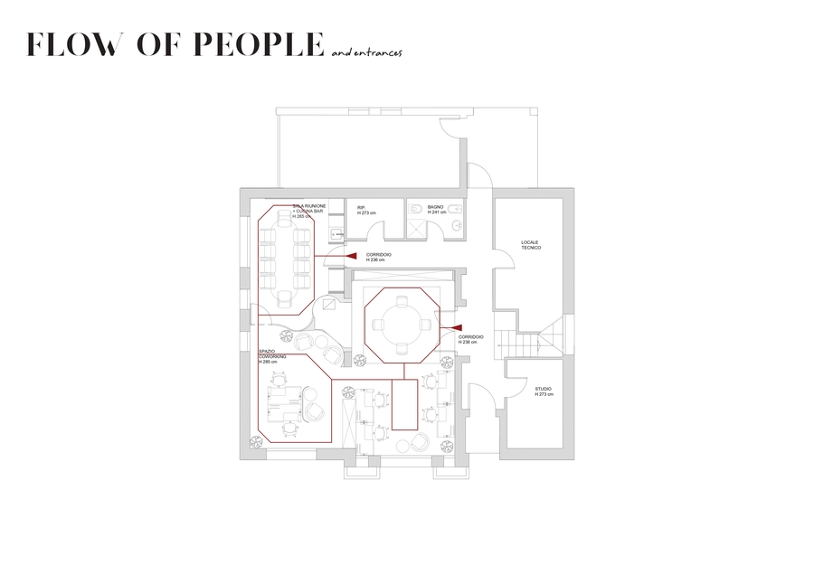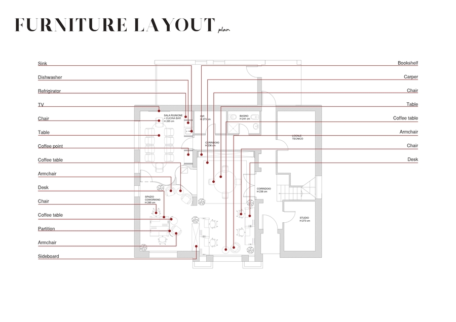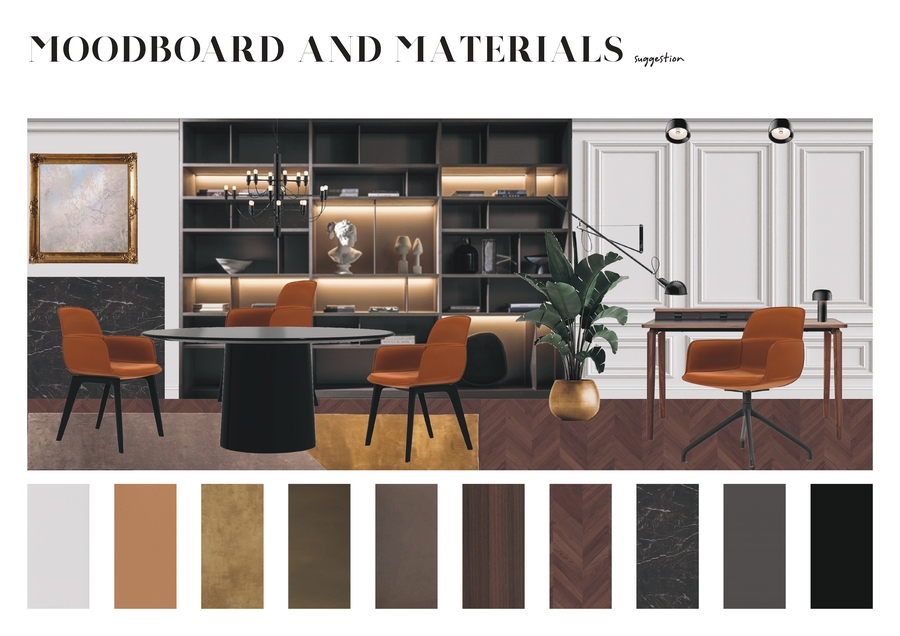 Концепция коворкинга в Милане, сегмент business/luxury. Комплектация помещения мебелью Molteni& C и освещением Flos.