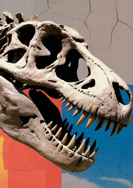 С помощью https://ideogram.ai/ была сделана обложка. Промт: Cinematic shot of a massive Tyrannosaurus Rex skull half-buried in cracked, arid earth. The skull is weathered, with sharp teeth exposed. Dramatic low-angle view, sunset lighting casting long shadows, high detail, photorealistic. (+ стиль collage)