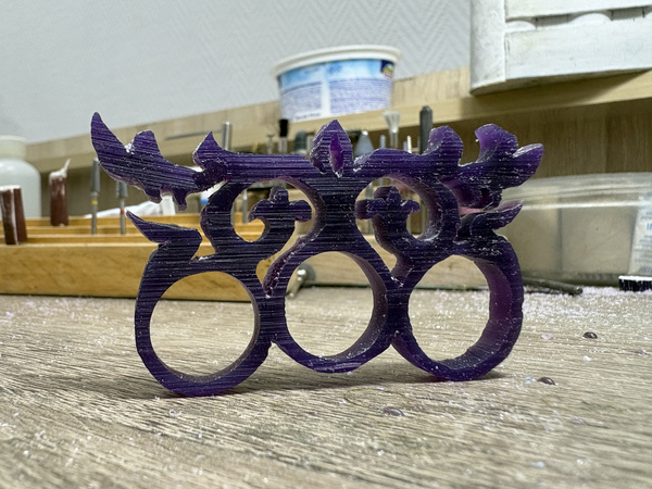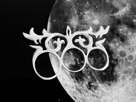 Кастет в серии «Томирис» — это не агрессивный предмет, а символ сдержанной, собранной силы. Его форма построена на повторяющихся элементах, напоминающих казахский орнамент, но интерпретированных в современном ключе. Плавные завитки сочетаются с чёткой конструкцией, создавая ощущение внутреннего напряжения. Он отсылает к оружию, но остаётся украшением, в котором важна не функция удара, а идея защиты и власти. Это объект про контроль, решимость и готовность отстоять себя.