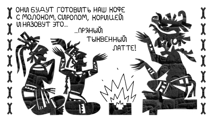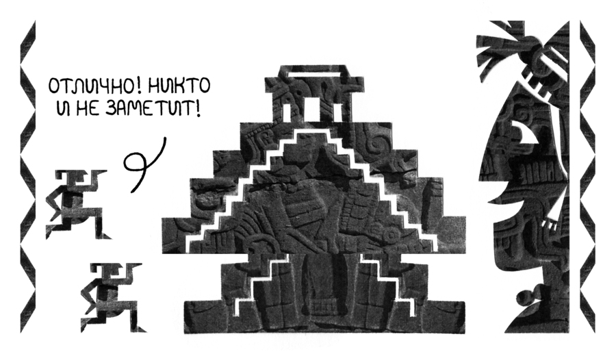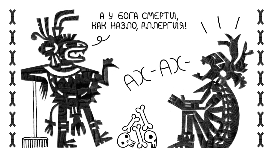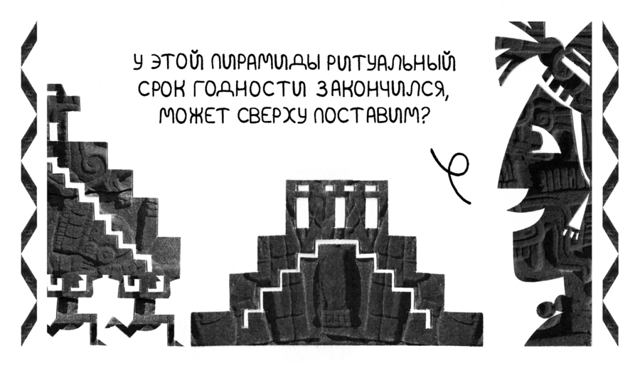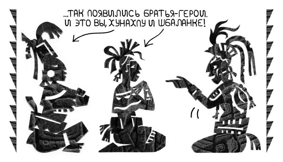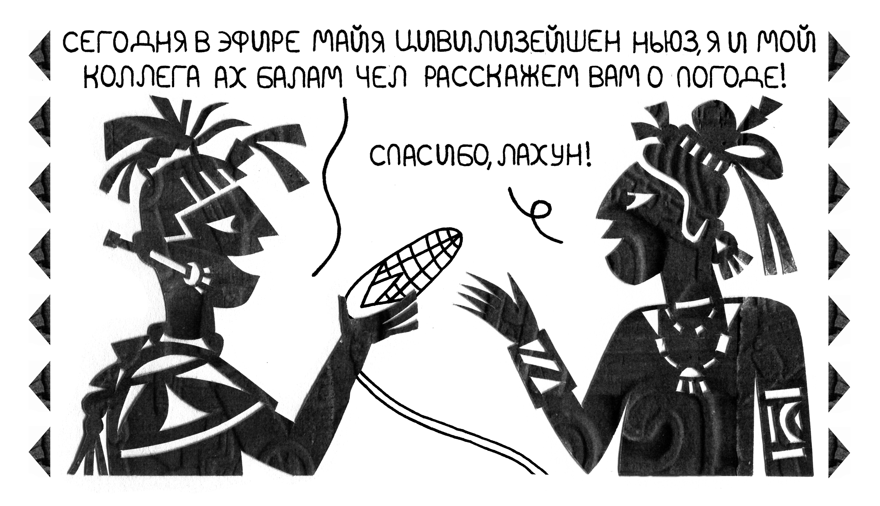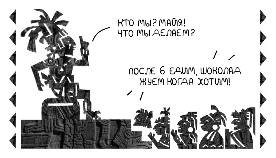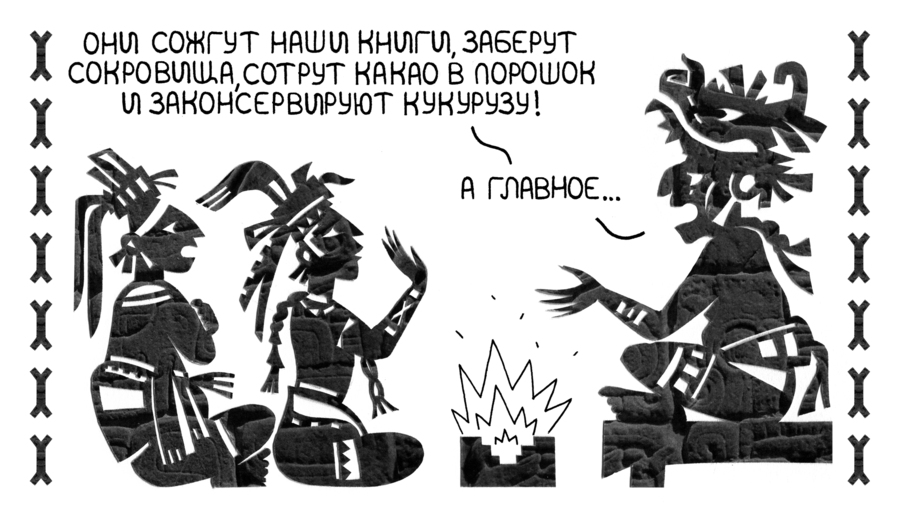 A series of short, absurd comics based on real historical events that tell the story of the great Mesoamerican civilization. The Mayans are considered unique: advanced astronomy, amazing architecture, three calendars, but how do you explain allergy to dust, love of wild cats, Darwin, and maize?