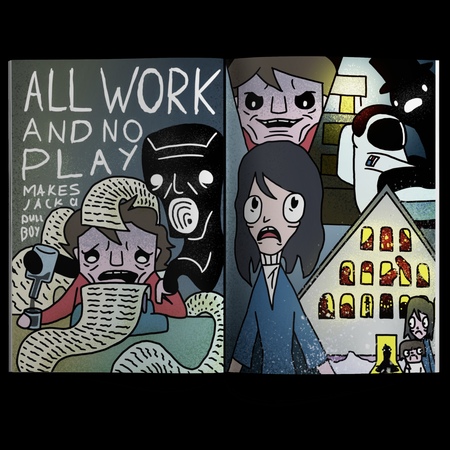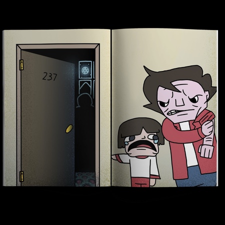 Через черный, иногда абсурдный юмор я попытался показать, как ужасающая история семьи Торренсов может звучать почти комически, если рассказывать её не как человек, а как древний дух, насмехающийся над людьми и их страхами.