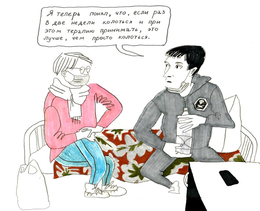 Дима не знает, получится ли у него завязать с веществами, да и никто не может знать этого наверняка, но теперь, если он продолжит принимать терапию регулярно и ответственно, то, как минимум, не сможет никому больше передать вирус и проживет до старости почти так же, как люди без ВИЧ.