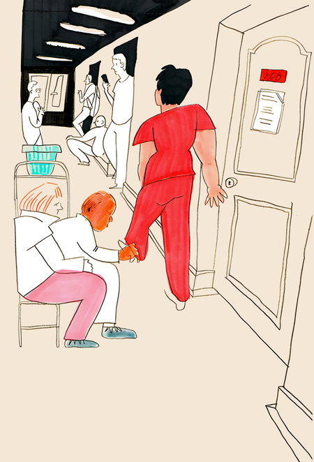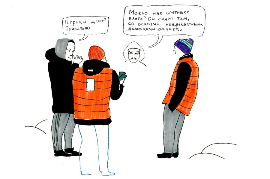 Скетчинг-репортаж к статье Маргариты Логиновой для «Таких дел» о том, почему люди с ВИЧ не лечатся, хотя знают о диагнозе, и как им можно помочь.