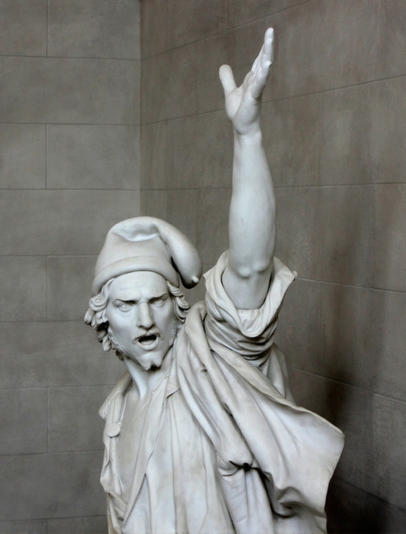 Костюмы фригийцев, антикварная гравюра с меди. Автор неизвестен, 1797 // Персей с головой Медузы. Антонио Канова, 1797–1801 (фрагмент) // Памятник Мазаньелло. Алессандро Путинатти, 1846 год (фрагмент)