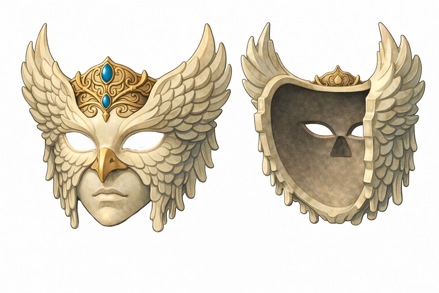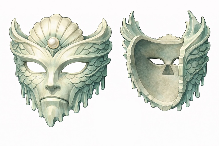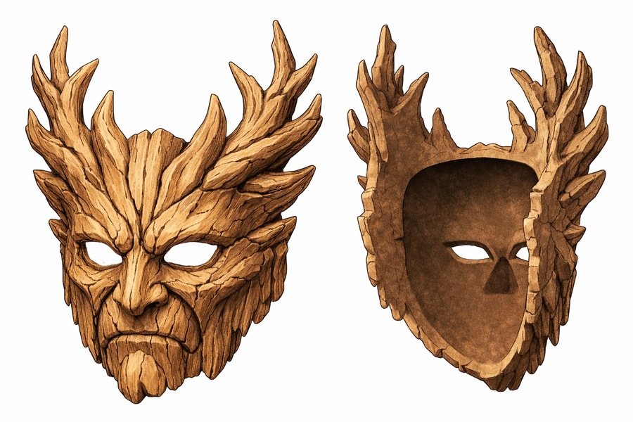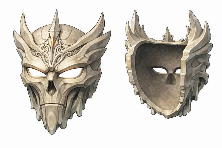 1. Работа над проектом началась с формирования художественной концепции: серии масок, вдохновлённой славянским фольклором, ритуалом и маскарадной культурой. На этом этапе были заданы ключевые принципы — театральная условность, скульптурность формы, отказ от гиперреализма и ориентация на физическое производство.