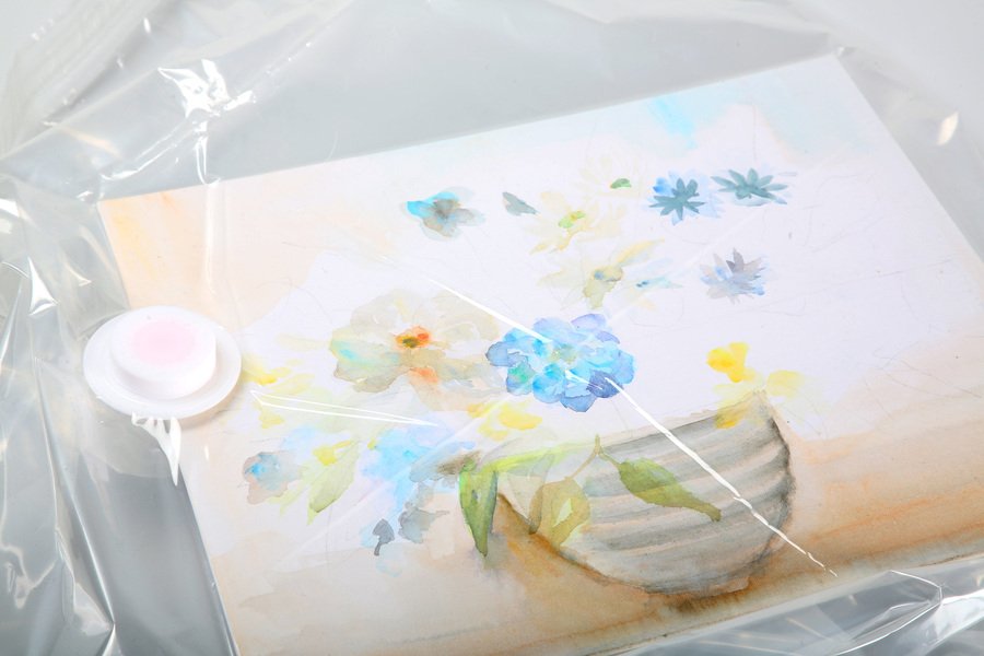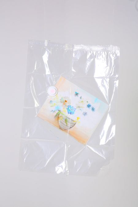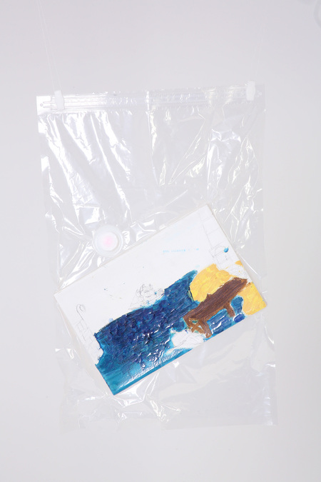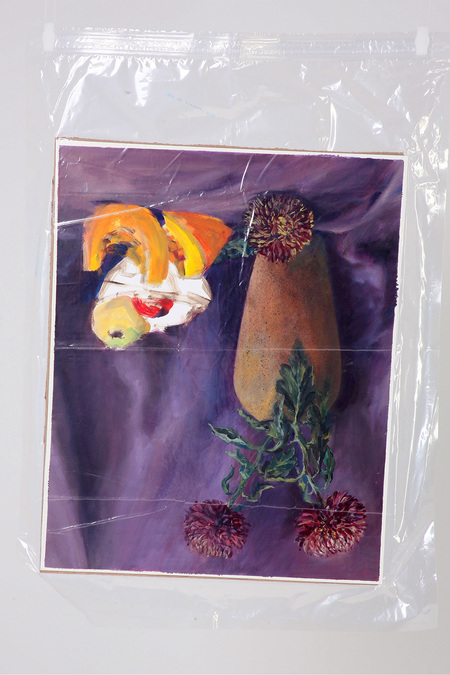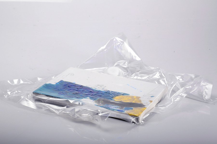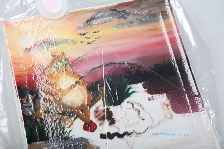 Серия состоит из нескольких незаконченных картин, начатых мной в разном возрасте. Вакуумная упаковка имитирует продуктовую упаковку для заморозки. На упаковке указан срок годности, но нет даты изготовления. Картины складируются, пылятся, как мусор. Взяв их в руки, нельзя определить, истек ли срок годности. Тогда и выкидывать нет причины.