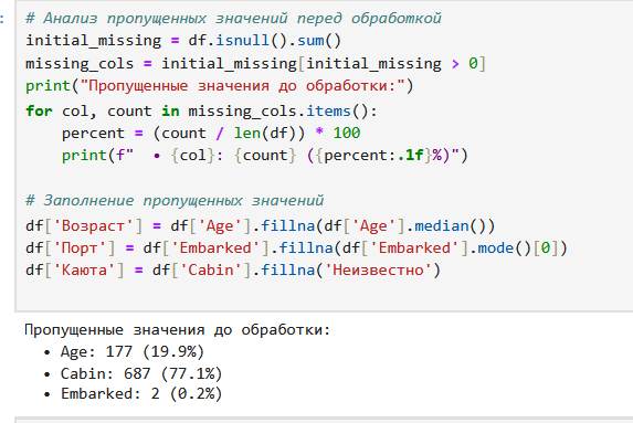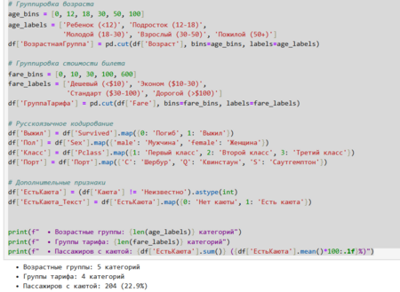 1)Диагностика и анализ пропущенных значений 2)Стратегическое заполнение пропусков 3)Создание новых аналитических признаков (Feature Engineering) 4)Категоризация непрерывных переменных 5)Русскоязычное кодирование и дополнительная информация 6)Дескриптивная статистика и проверка результатов