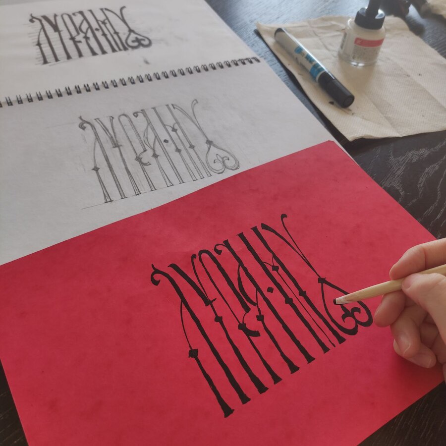 Визуал сочетает авторскую ручную каллиграфию (тушь, перо, бумага) и генеративный ИИ (Gemini AI), объединяя в едином художественном высказывании декоративное кириллическое письмо и цифровые эксперименты.
