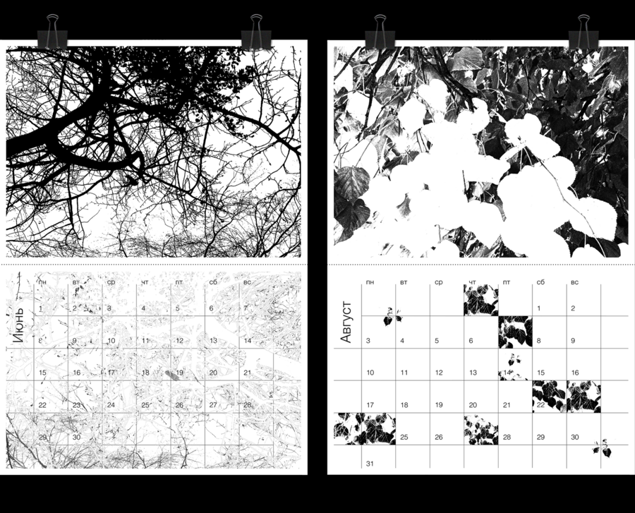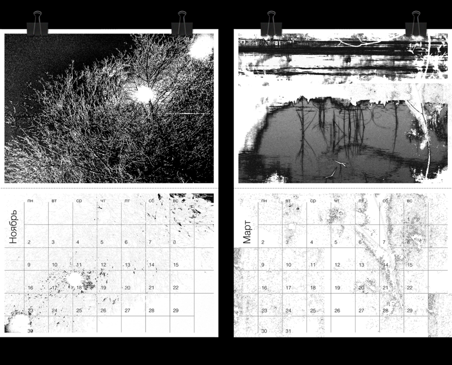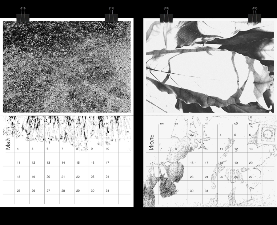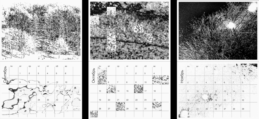Календарь посвящен окружающим нас текстурам, уникальным для каждого сезона. Он как своеобразный дневник наблюдений и ощущений, выражающихся в сочетаниях разных фактур и ритмов. Визуальная основа календаря — это обработанные и пересобранные фотографии пейзажей, поверхностей и их текстур, в свободных ассоциациях с разными временами года.