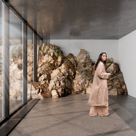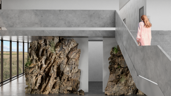 Концепция заключается в переосмыслении темы того, что должно было появится, но так и не произошло. Формообразование напоминает сдвиг тектонических плит, а интерьер отеля напоминает гору изнутри.