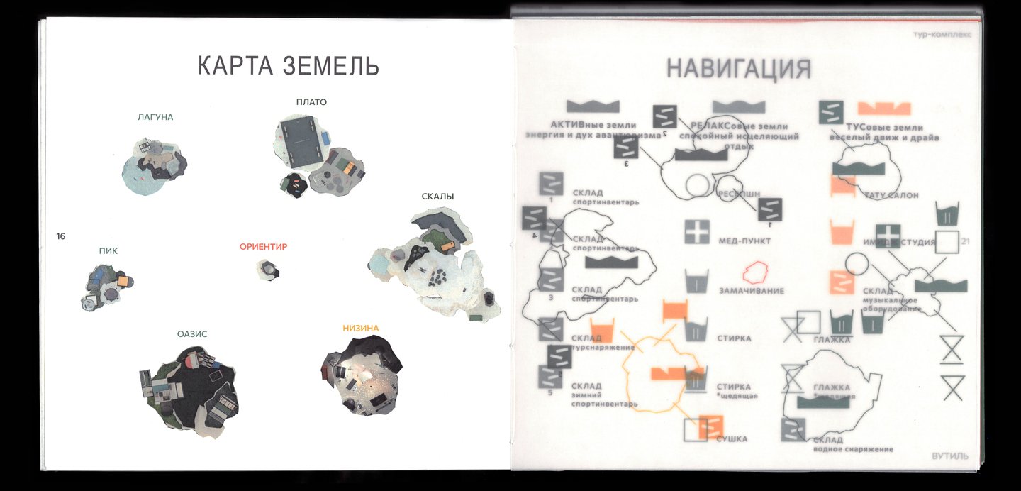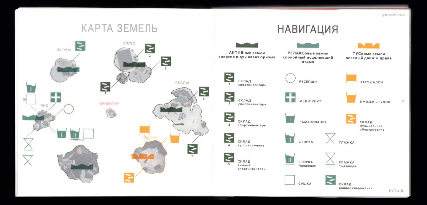 Основная часть книги — это иллюстирование шести земель с разным видом отдыха и развлечений. Навигация по книге ведется по карте комплекса