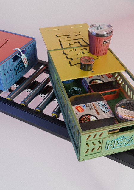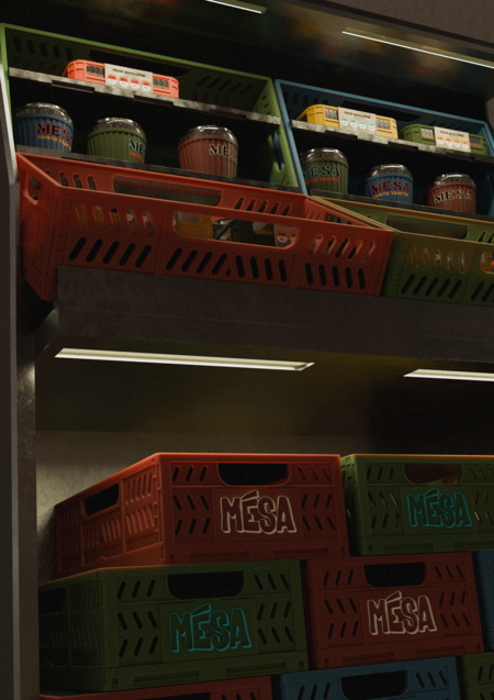 POSM также был вдохновлен рыночной атмосферой и остается в той же системе, используя знакомый образ пластиковых контейнеров.