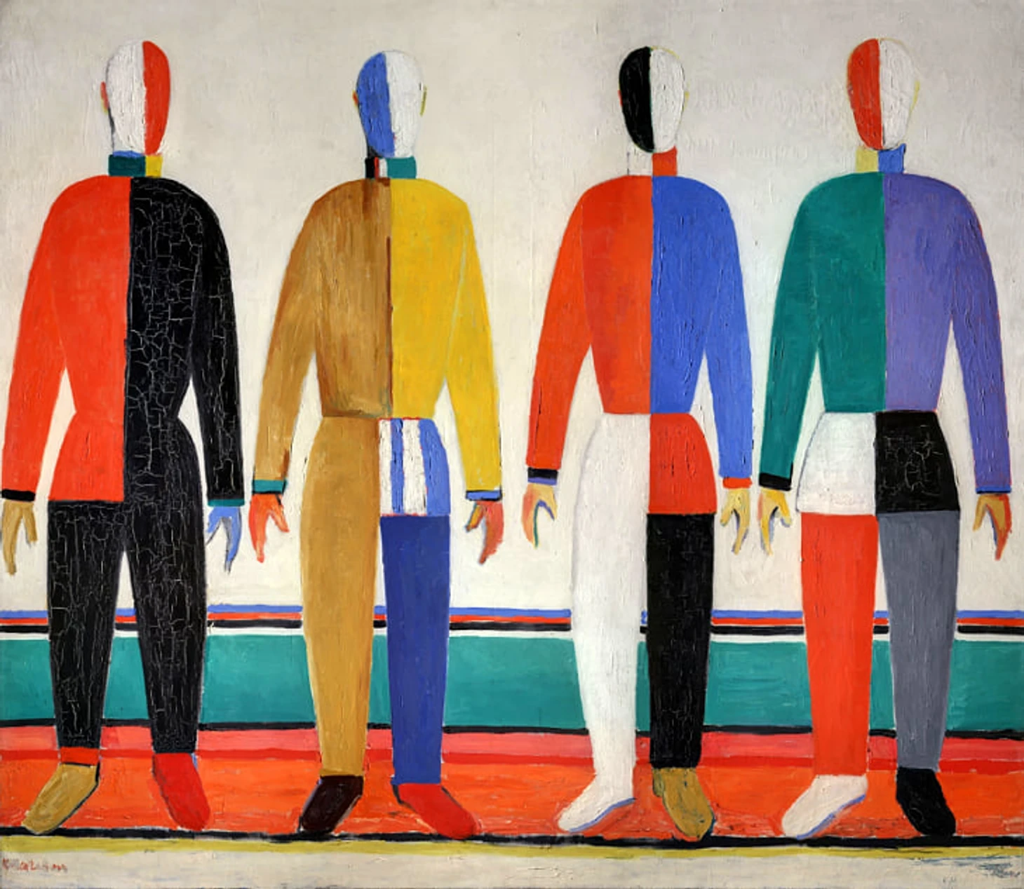 1. Кубизм Тела фрагментированы, как будто игрок, прорывающийся к кольцу противника 2. Супрематизм Красочные геометрические фигуры, словно атлеты 3. Абстракция и экспрессионизм Хаос и порядок одновременно, как столкновение команд на матче 4. Неопластицизм Ритм вертикали и горизонтали, визуальная метафора тактики и расположения игроков на поле