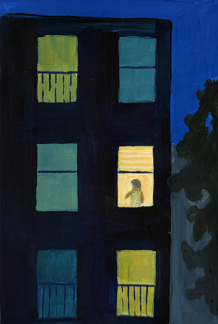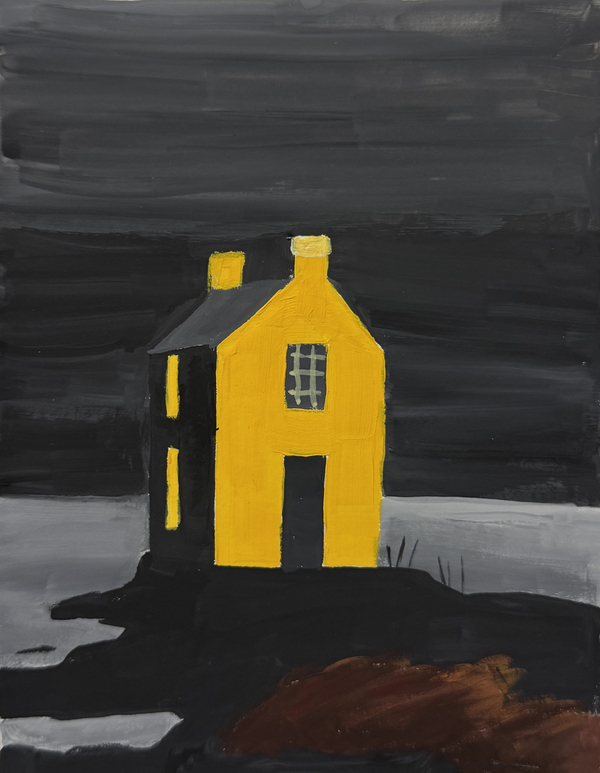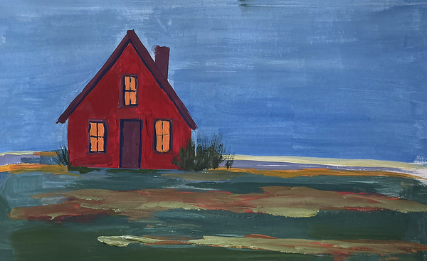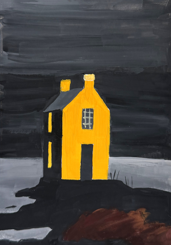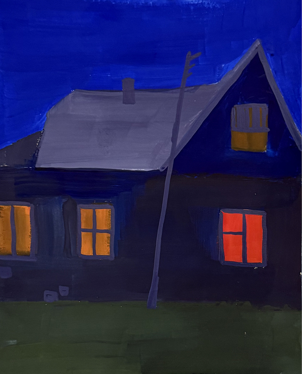 Небольшая серия работ посвящён образу дома как месту, связанному с разными ощущениями, например, тепла или воспоминаний. В работах я исследую, как цвет и его контрасты — по светлоте, насыщенности и цвету — влияют на эмоциональное восприятие пространства. Архитектурные формы домов становятся основой для передачи состояний ностальгии, спокойствия или грусти. Особое внимание уделено организации холста и взаимодействию цветовых плоскостей, благодаря чему дом воспринимается не столько как конкретное место, сколько как ощущение.