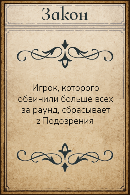 Ваша главная цель — набрать наименьшее количество фишек Подозрений, чтобы выжить. Вы начинаете с 5 фишек. Всего в игре 6 раундов.
