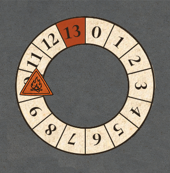 Если Истерия достигает максимума (13), игрок, сдвинувший последним жетон по шкале, выбывает из игры.