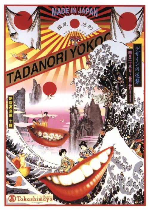 Таданори Ёкоо считается первым представителем японского поп-арта. Его дизайн вырос из его детства. Яркие этикетки из родительской лавки и коллекционные карточки мэнко с самураями сформировали его фирменный стиль, насыщаемый образами массовой культуры.
