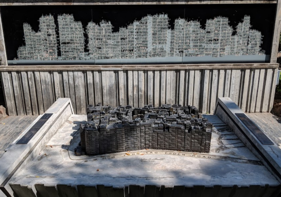 1. Современный Kowloon Walled City Park — вид сверху 2. Макет Kowloon Walled City в парке, разбитом на месте города