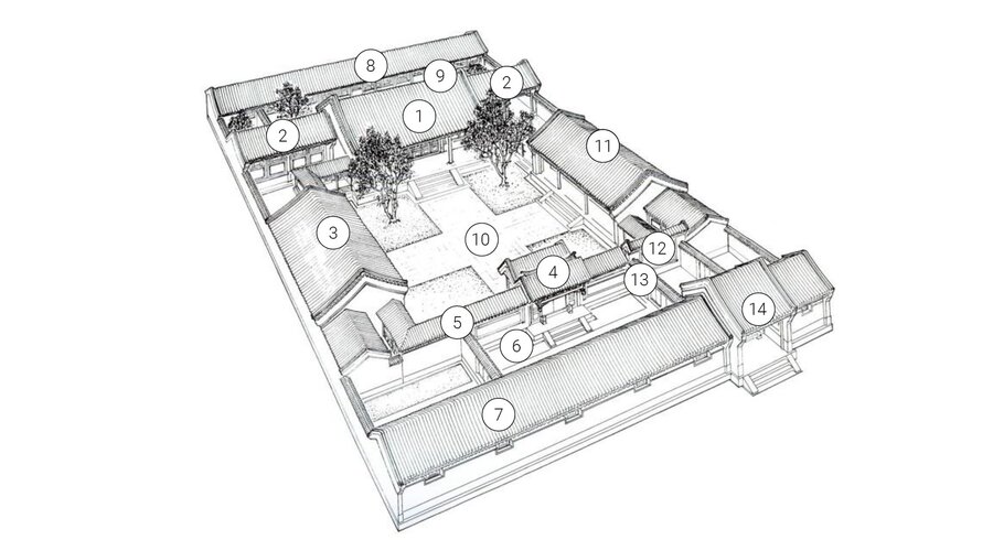 Эргономика традиционного китайского жилища базируется на строгой ориентации по сторонам света и функциональном зонировании. Главные строения располагаются по оси север-юг, что обеспечивает оптимальный микроклимат: северная сторона защищена от ветров, а южная максимально открыта для солнечного света. Внутреннее пространство организуется согласно социальной иерархии — старшие поколения занимают северные помещения, тогда как молодежь и слуги размещаются в восточных и южных флигелях, что отражает конфуцианские принципы семейного уклада.