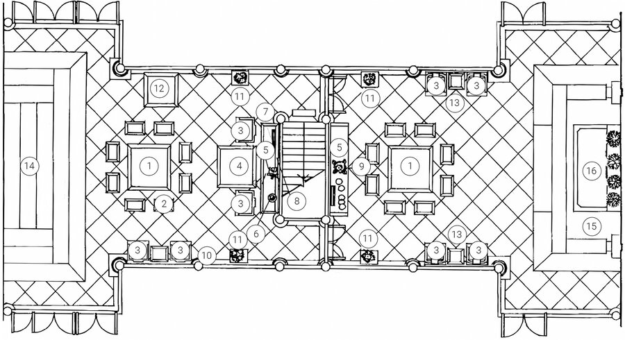 Татами — маты, служившие модульной единицей для зонирования пространства. Их плотная соломенная основа обеспечивала теплоизоляцию в условиях влажного климата, а съемная конструкция позволяла регулярно проветривать и менять напольное покрытие.