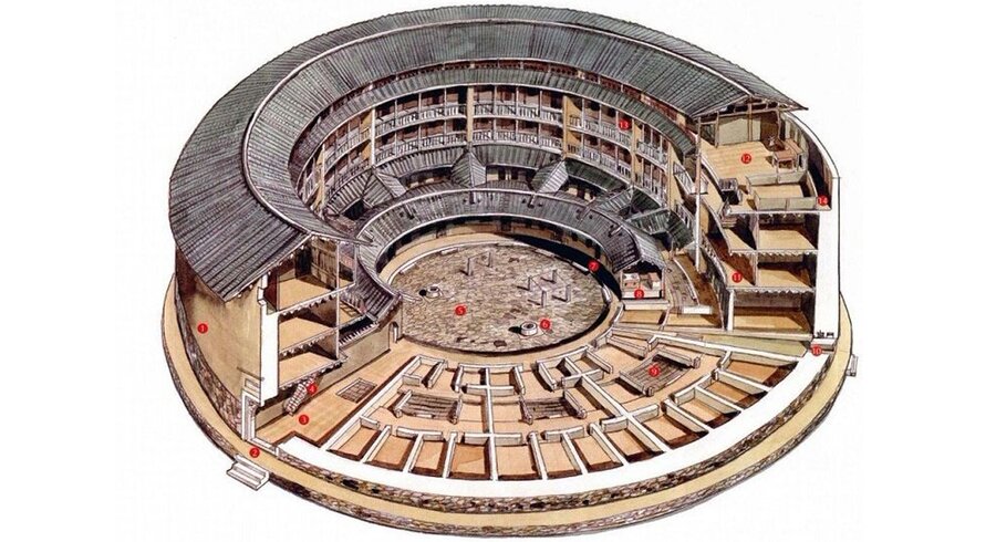 Дом «Хакка» в разрез. Между 12-м и 20-м веками.
