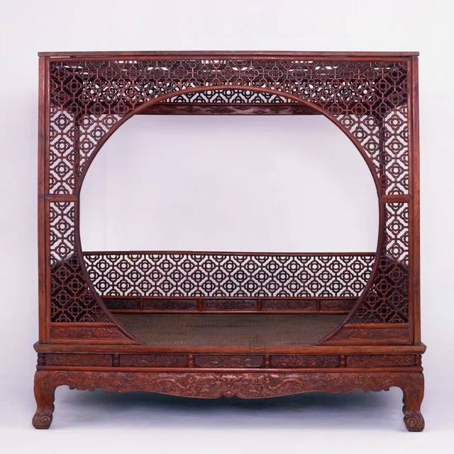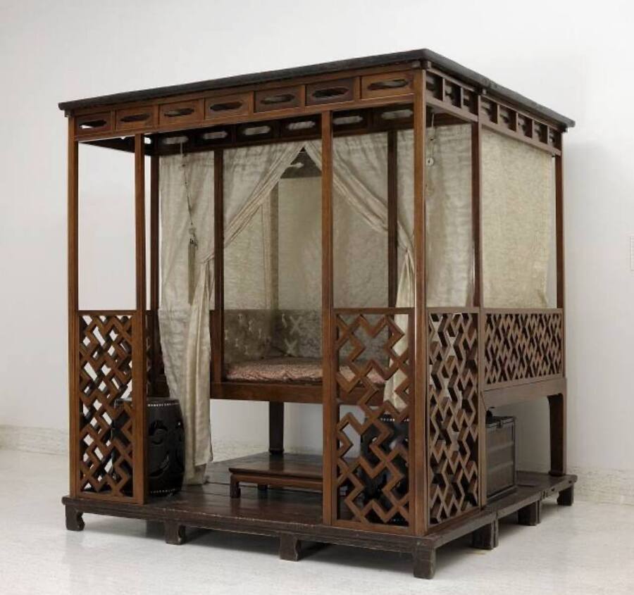 Резные деревянные кровати с балдахином — конструкции с тканевыми занавесями и сложной резьбой. Густонаселенные районы Южного Китая с влажным климатом требовали защиты от насекомых, а многослойные ткани создавали микроклимат для комфортного сна.