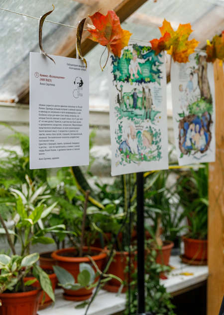 «Возвращение» и проект саунд-дизайна «Цикорий» выставлялись вместе в яснополянской теплице, взаимодополняя друг друга. Люди слушали и смотрели