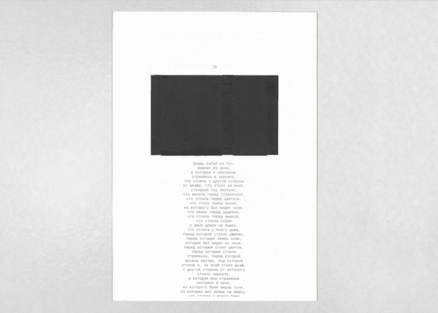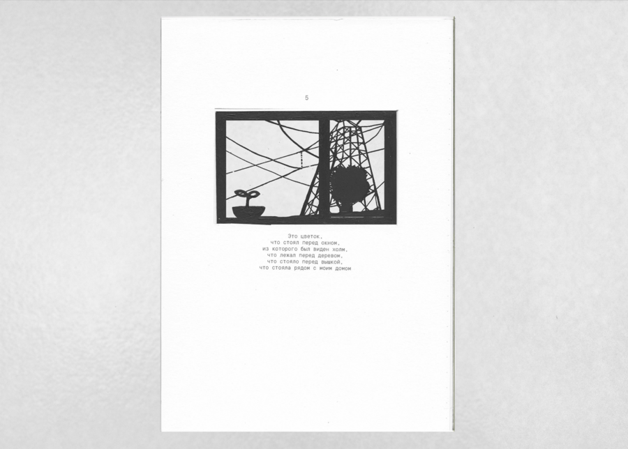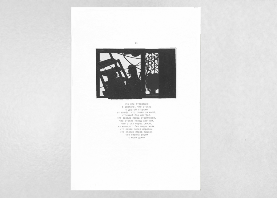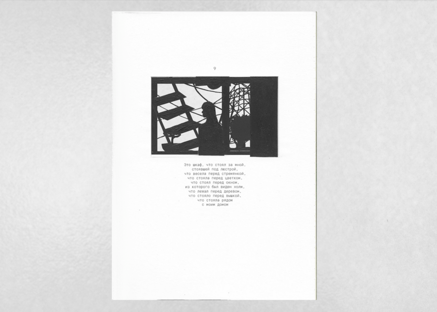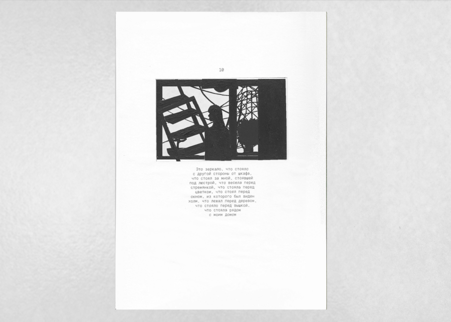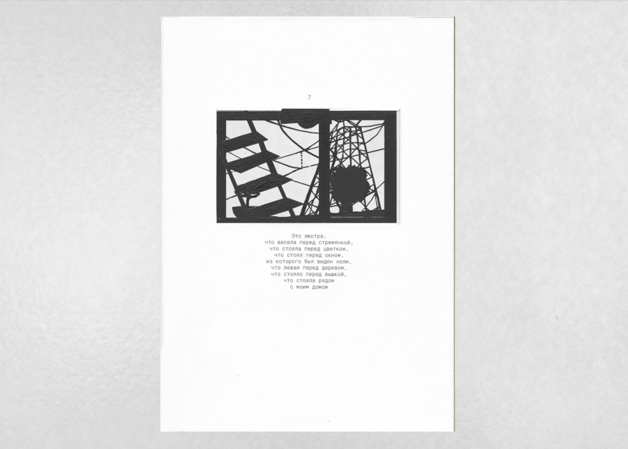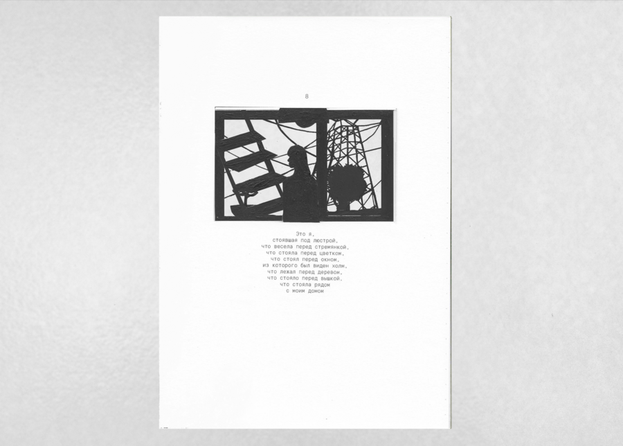 «Вышка, что стояла рядом с моим домом» — визуально-повествовательный фрактал, рассказ о персональном пространстве. Каждая новая страница влечет за собой весь груз предыдущего повествования, которое в итоге впадает в пустоту.
