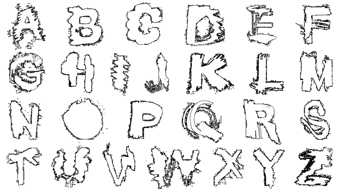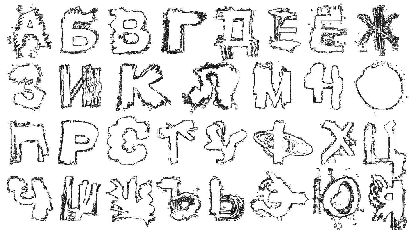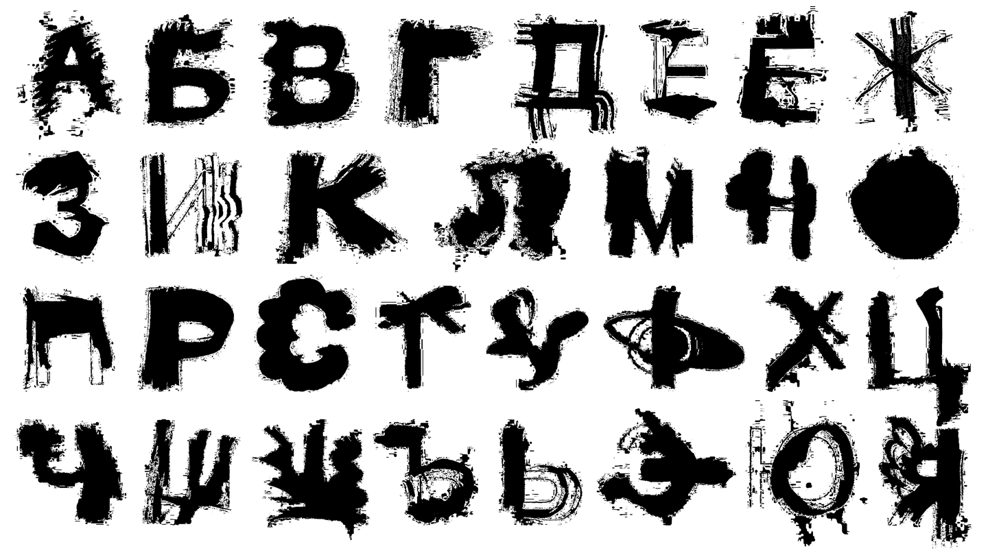 Айдентика выставки основана на шрифте, представляющего собой краску. Подобно тому как художник создает свои картины — создан шрифт. На холст, чертежи, и все то, что окружает в повседневной жизни — наносится краска, преобразуя реальность.