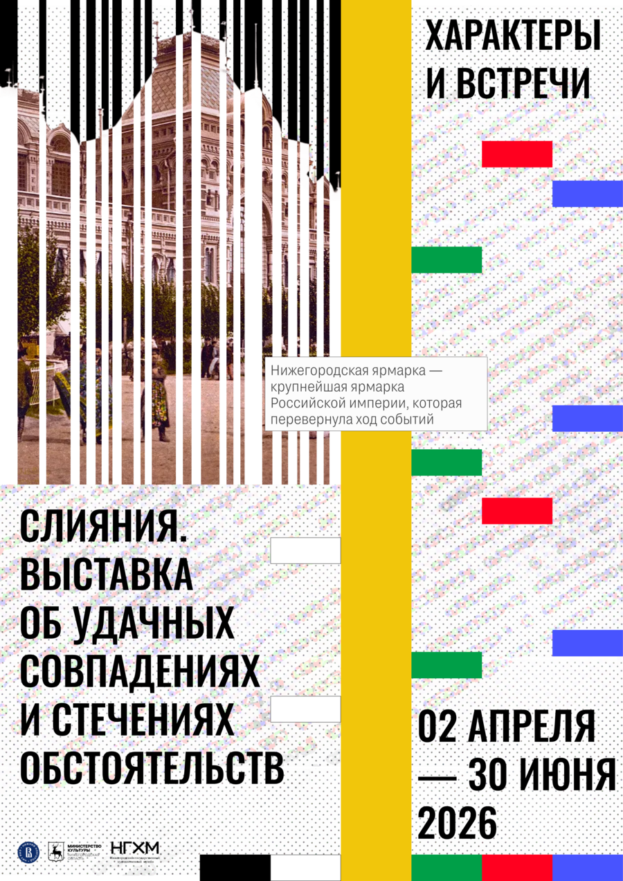 «Слияния. Выставка об удачных совпадениях и стечениях обстоятельств» — выставка, посвященная 30-летнему юбилею нижегородскому кампусу НИУ ВШЭ. Лейтмотив выставки — Нижний Новгород как место переплетения идей, рек и судеб. Чтобы раскрыть потенциал этого замысла, мы создали подходящую айдентику